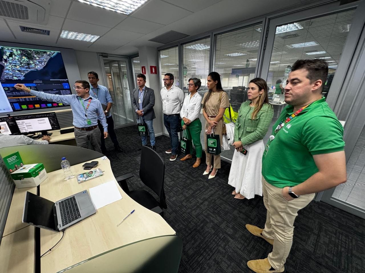 Na oportunidade, os visitantes conheceram as instalações da concessionária de energia elétrica e setores específicos, como a sala de situação, de onde ocorre o monitoramento de todo o Estado da Bahia, e também a sala de segurança.